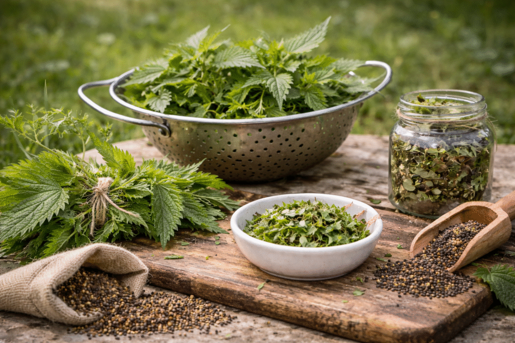 La semilla de ortiga es la semilla madura que produce la planta cuando espiga.