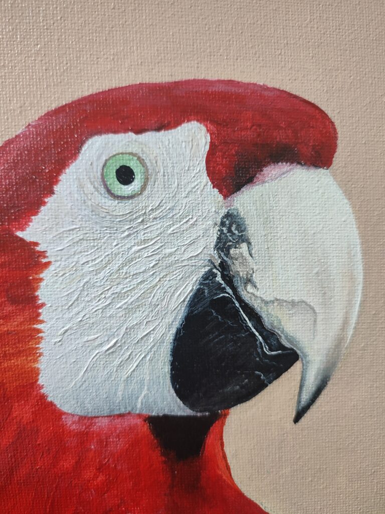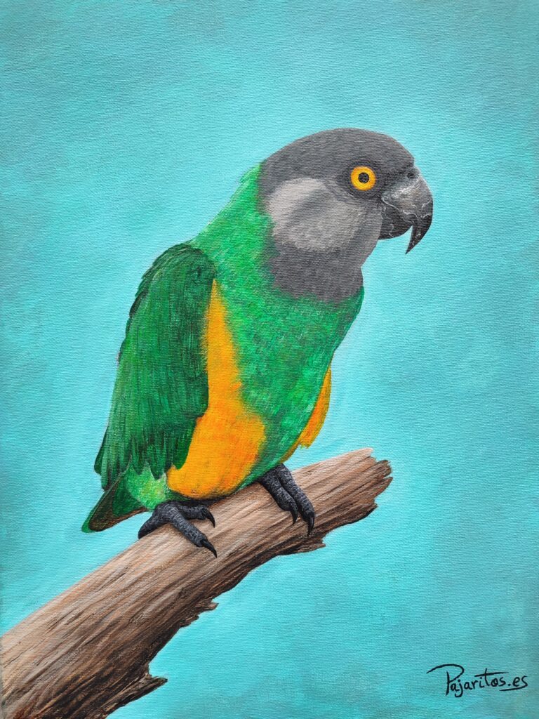 Una obra original creada a mano a partir de la foto de tu pájaro, con pintura acrílica sobre lienzo y un estilo realista que respeta la esencia y los colores de tu ave.
